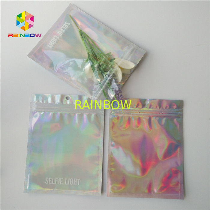 ডায়মন্ড উজ্জ্বল কাস্টম মুদ্রণ লোগো পরিষ্কার ফ্রন্ট এবং হলোগ্রাফিক ব্যাক হলোগ্রাফিক পাউচ সঙ্গে লেজার ব্যাগ