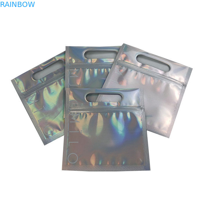 পোর্টেবল থ্রি সাইডস সিল হোলোগ্রাফিকিক লেজার ফিল্ম কাস্টম ব্যাগগুলি জিপলক হ্যান্ডল সহ |