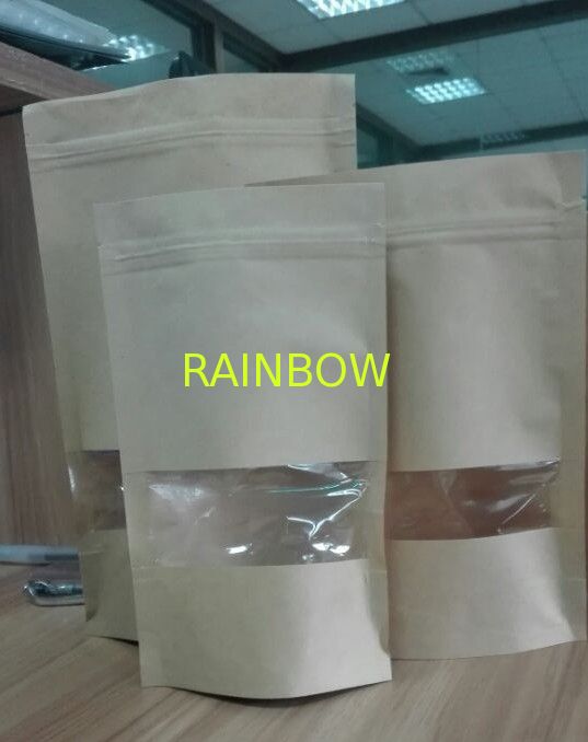 Reclosable শীর্ষ জipper এবং উইন্ডো সঙ্গে কোন মুদ্রণ কাস্টম বাদামী কাগজ ব্যাগ পর্যন্ত দাঁড়ানো